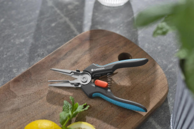 GripCut от GARDENA оснащен захватом и позволяет резать и удерживать одновременно одной рукой благодаря встроенной функции удержания. Возможности использования разнообразны: нарежьте свежие травы, такие как петрушка или зеленый лук, и держите их одновременно. В частности, сбор перца становится проще, обжигающий сок не попадает на пальцы. Ничего не упадет, и у вас всегда будет свободна одна рука для миски или сита, которые больше не придется ставить на пол. Вы избавлены от необходимости постоянно наклоняться. Качественные и прочные лезвия из нержавеющей стали впечатляют при резке. С помощью длинных и острых ножей вы сможете делать чистые и точные разрезы вплоть до кончика. Благодаря эргономичным ручкам ErgoTec с мягкими деталями ножницы идеально лежат в руке и, прежде всего, не скользят в руке. Благодаря замку одной рукой вы можете надежно закрыть для хранения. Лезвия безопасны для пищевых продуктов и не передают никакого вкуса и запаха. Для облегчения очистки просто сначала разберите держатель, а затем поместите его в посудомоечную машину вместе с ножницами для сбора урожая. Благодаря гарантии производителя GARDENA впечатляюще подчеркивает высокое качество GripCut.